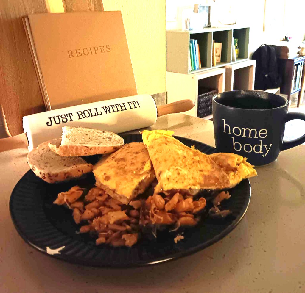 I am sharing an easy and delicious recipe that I made for my partner and myself this morning using just a handful of affordable ingredients and needs-to-go veggies.