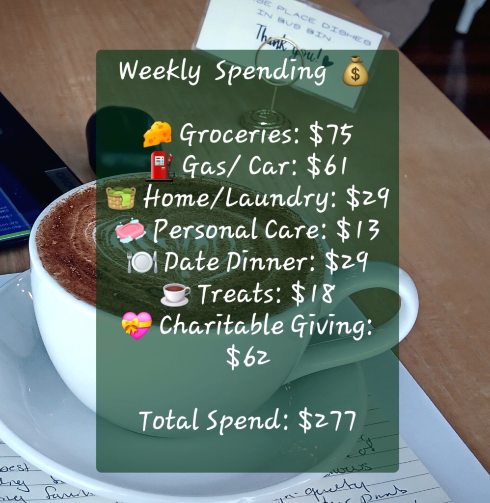 Hi again! I am sharing my spending tracking from the past week. I enjoy sharing this each week not only because it is a mindful way for me to sit and reflect in my total spending for the week, but also a chance to share in transparency and accountability with this community.